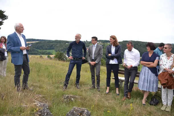 Der Minister war voll des Lobes für das Biodiversitätsprojekt „Juradistl“ und er sagte spontan zu, dass nach Ablauf der aktuellen Förderperiode mit einer Fortführung der Förderung zu rechnen sei. Landrätin Tanja Schweiger verwies darauf, dass die Landschaftspflegeverbände schon Jahrzehnte vor der aktuellen Diskussion um Arten- und Naturschutz genau in dem Sinne gearbeitet haben. Dies bestätigte auch Landrat Thomas Ebeling, Landkreis Schwandorf.