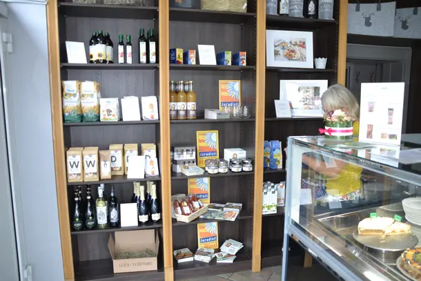 Angeschlossen an das Restaurant ist auch ein Regionalladen, in dem landwirtschaftliche Produkte mit einer einzigartigen Auswahl vertrieben werden. Neben vielen selbstgemachten Erzeugnissen werden hier auch zahlreiche Produkte der Marke „Juradistl“ (Juradistl-Lamm, Juradistl-Weiderind, Juradistl-Apfelgetränke, Juradistl-Honig) angeboten, welche von den Landschaftspflegeverbänden Amberg-Sulzbach, Neumarkt i.d.OPf., Regensburg und Schwandorf in der Region etabliert wurden. Landrätin Tanja Schweiger als Vorsitzende und Josef Sedlmeier als Geschäftsführer des Landschaftspflegeverbandes Regensburg zeigten sich beeindruckt von der neuen Geschäftsidee. „Wir freuen uns besonders, dass auf der Speisekarte Produkte wie etwa Rindercurrywurst oder Cevapcici aus Juradistl-Rindfleisch angeboten werden“.