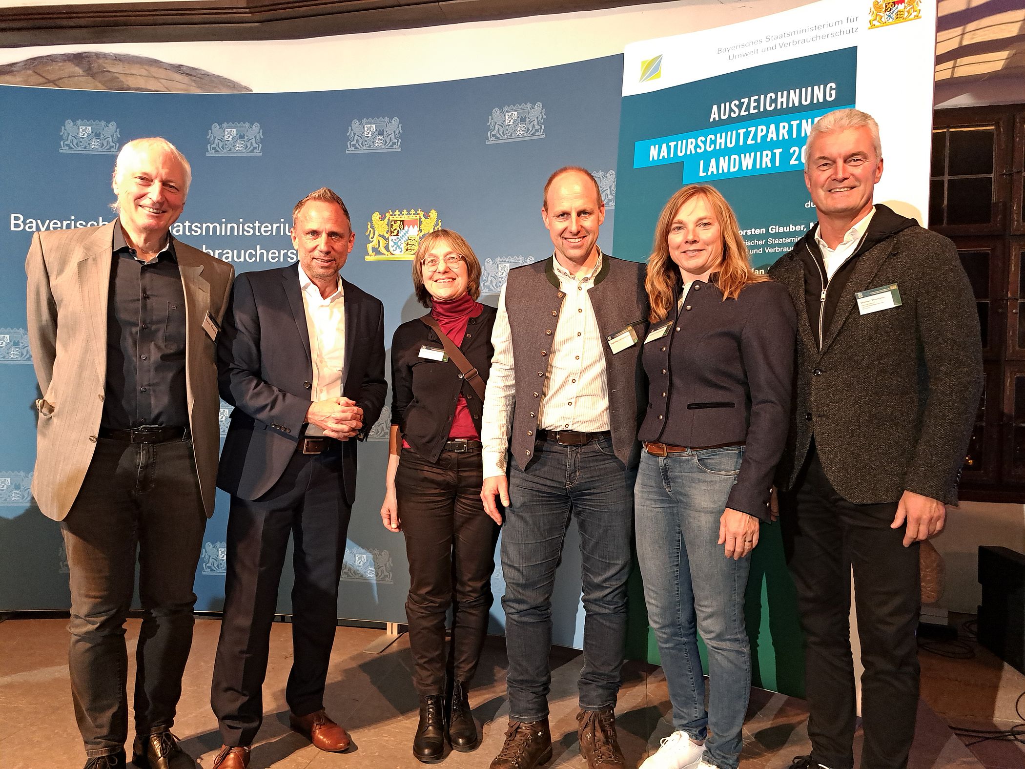 Am Montag, 17.11.2025 wurden in Nürnberg 15 Landwirte mit viel Engagement für die Natur und Umwelt vom Staatsministerium für Umwelt und Verbraucherschutz (StMUV) ausgezeichnet. Auch die Juradistl-Landwirte Daniela und Matthias Ochsenkühn gehören zu den Gewinnern, die mit einem ersten Preis ausgezeichnet wurden.